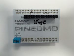 To have a more professional look we designed a all-in-one pcb board which integrates the controller board, shield and DC-DC power converter on one PCB. It is based on the latest Nucleo V4 schematics. It can be ordered from PCB assembly services like pcbway.com or elecrow.com. You only need to solder the power cables for the panels and mount the RGB panels. All the necessary order information can be found here. Members of the community have organized a group buy evo boards. Search for PIN2DMD EVO on german flippermarkt forum or VPUniverse forum . The latest EVO boards (128×32,192×64,256×64) have a MMI Raspberry PI socket onboard. For more information about PIN2DMD MMI see https://github.com/lucky01/PIN2DMD_MMI